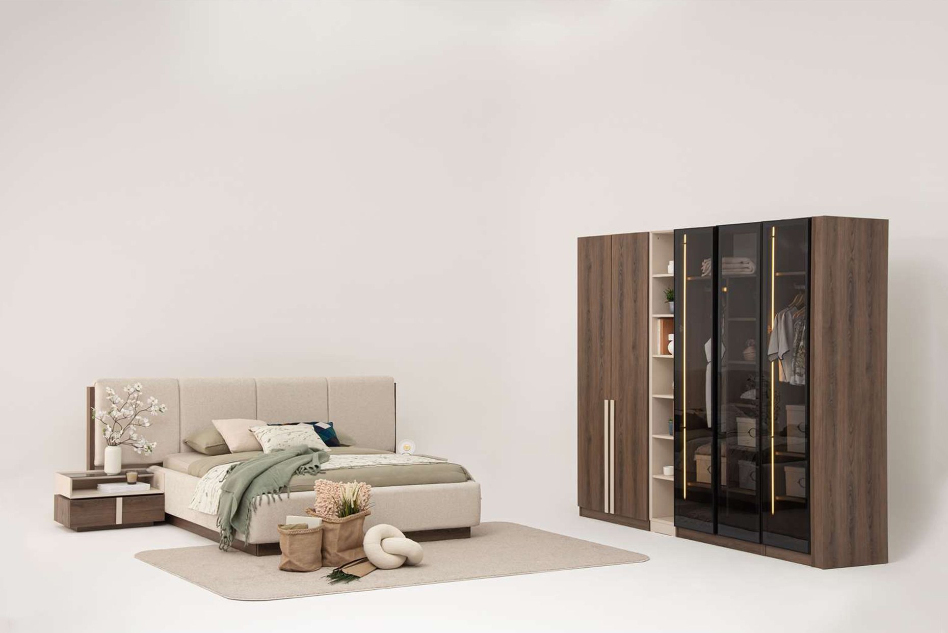 | Takım İçeriği | 6 Kapaklı Dolap + Bazalı Karyola + Şifonyer + x2 Komodinden oluşmaktadır. Bench ve puf fiyata dahil değildir! Ek bedel ile eklenebilir. Farklı Kombinasyonlarla da Satın Alabilirsiniz. |