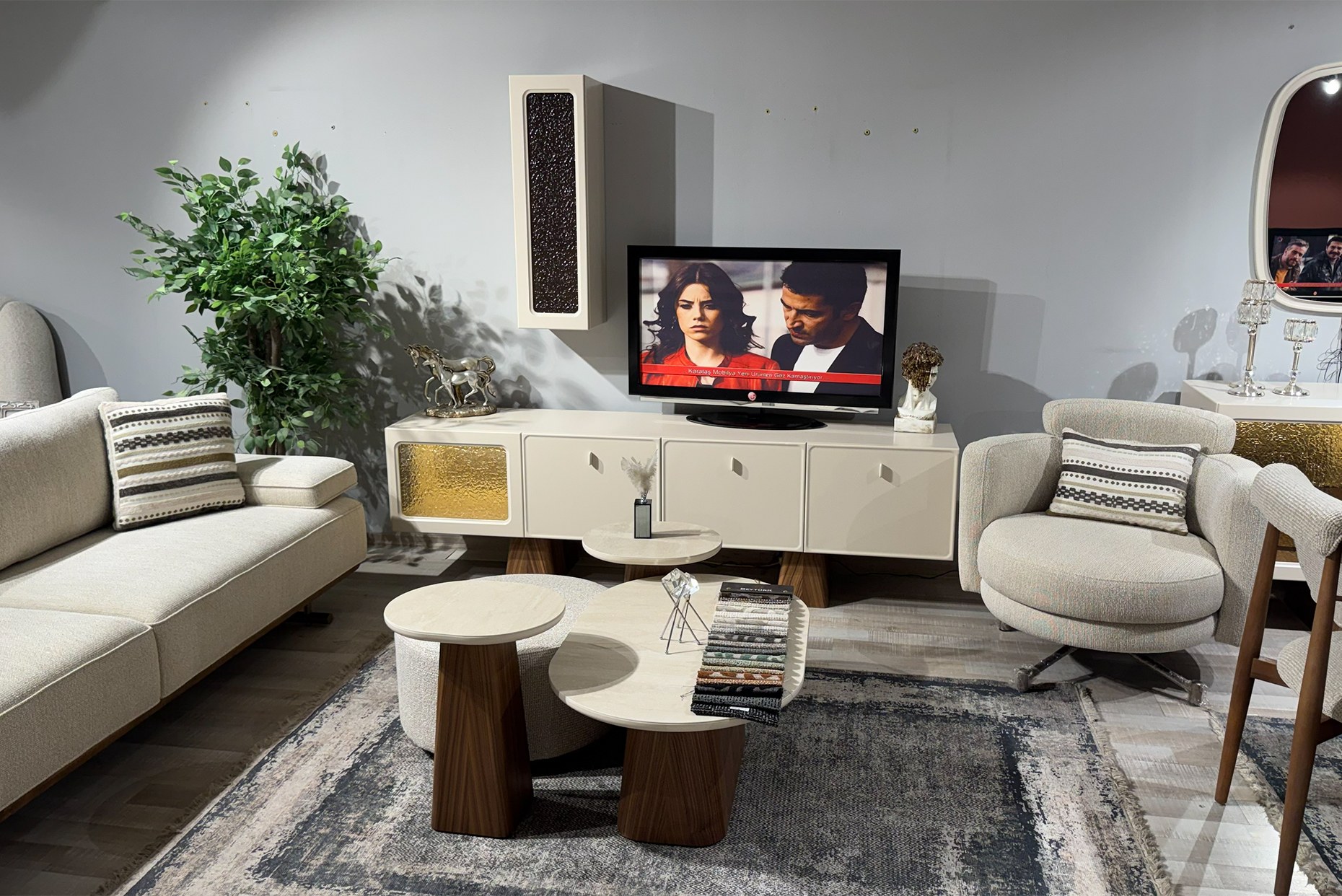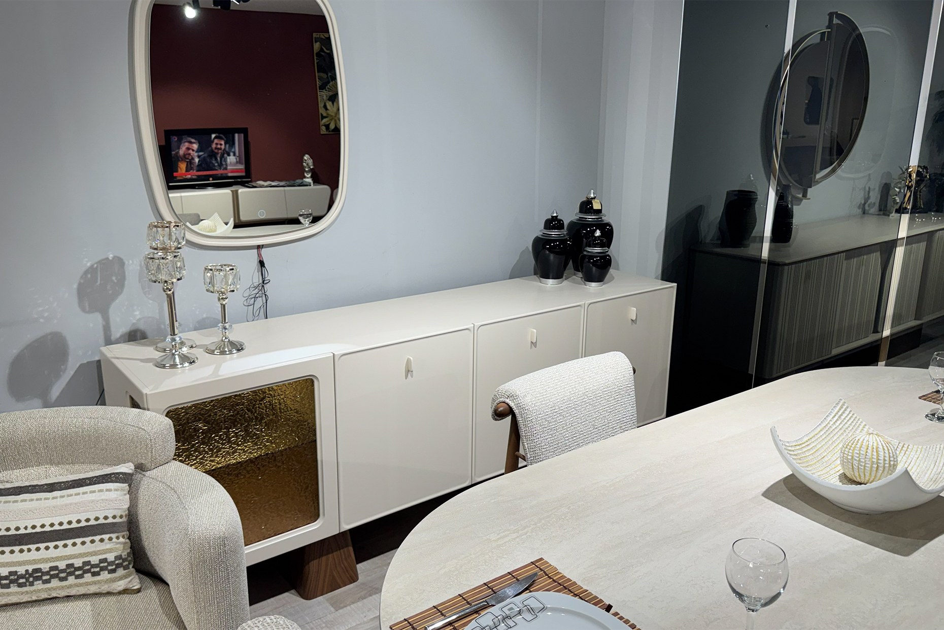 Konsol – Masa – 6 adet Sandalye – Tv Ünitesinden oluşmaktadır.Ürün teşhirden kampanyalı olarak satışa sunulmaktadır.Nakliye hariç fiyatlandırılmıştır.Ayrı satışımız yoktur.Tam set olarak satılmaktadır. |
