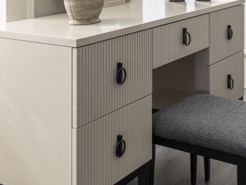 Dolapta ve çekmecelerde Alman Markası Hettich menteşe ve rayları kullanılmıştır, uzun ömür garantisi mevcuttur. Üründe ahşap ayak kulanılmıştır. Yatak Başlığın Ön Kısmı Kumaş Kullanılmıştır. Kullanım kolaylı amacı ile kapaklarda ve çekmecelerde yavaşlatıcı mekanizma uygulanmıştır. |