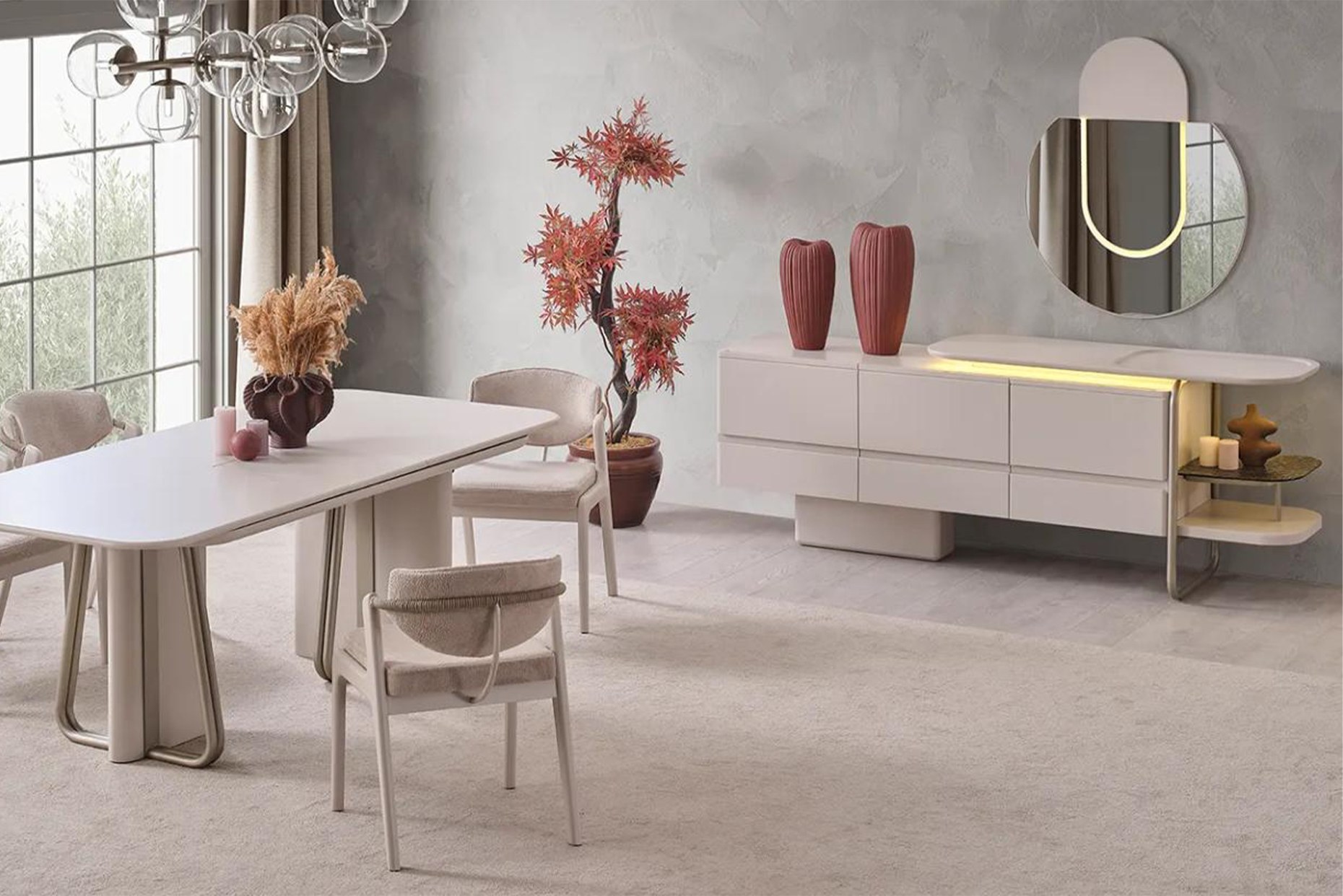 | Takım İçeriği | Yemek Masası + Konsol + Konsol Aynası + 6 adet Sandalyeden oluşmaktadır. Farklı Kombinasyonlarla da Satın Alabilirsiniz. |